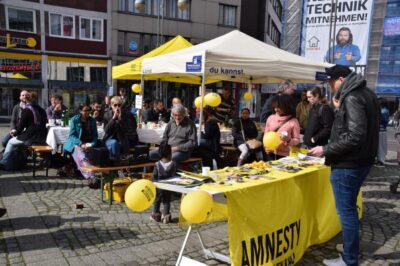 Die Aktion stieß auf großes Interesse und es kam zu vielen Gesprächen mit Passanten, sodass es sehr bedauert wurde als der Stand nach der angemeldeten Zeit von fünf Stunden abgebaut werden musste.